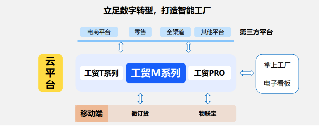 工贸ERP M系列产品顺应数字化转型趋势,采用全新BS架构,充分利用云端部署优势,以客户为中心, 聚焦车间现场管理,打造企业数字化制造平台。 M系列面向中小型制造企业,提供智能工厂一体化解决方案,助力企业数字化转型,打造智能工厂。